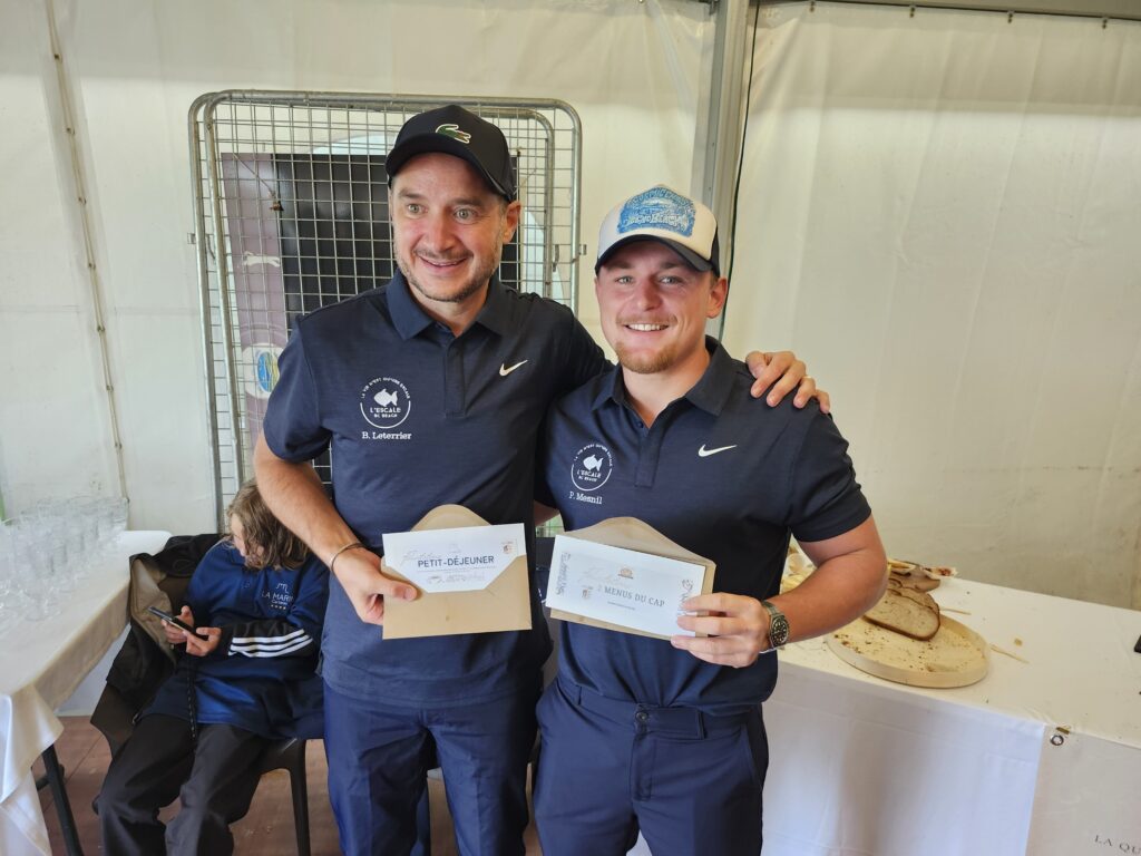 et André-Paul Viel en brut (4 birdies et 14 pars) et de Gilles Frédéric et Christophe Grolleau en net (47 pts), avant de procéder au tirage au sort. Chaque participant à cette compétition s’est vu remettre un polo logoté aux couleurs du club et de l’établissement hôtelier ainsi qu’une boîte de trois balles également logotées.