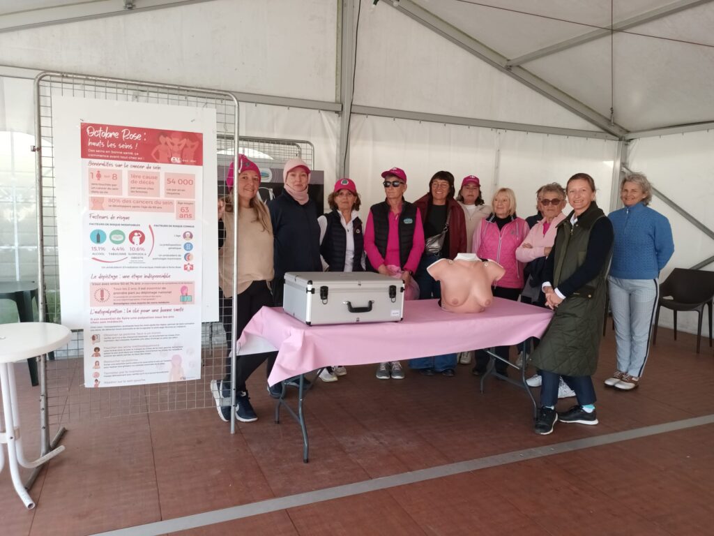 Les golfeurs et golfeuses étaient au rendez vous autant pour le sport que pour l’atelier d’auto palpation proposé par Catherine Marion et Caroline Carne, sages femmes et le docteur Tudorache, radiologue et Présidente de Coeur et Cancer. Ces dernières rappelaient l’intérêt du dépistage précoce pour une prise en charge efficace devant un auditoire très attentif.