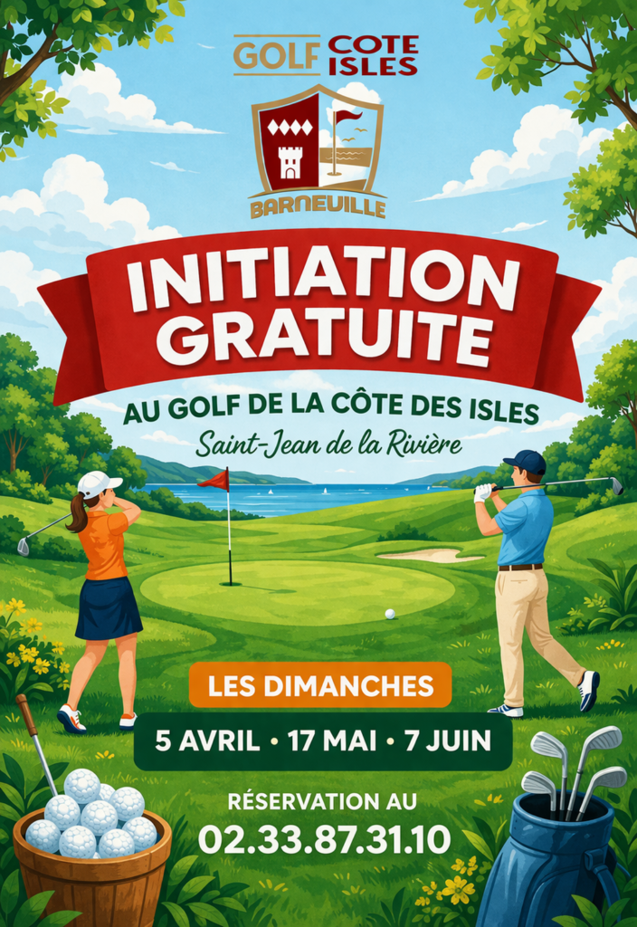 Une initiation est organisée au Golf de la Côte des Isles par Frédéric Monmarché à ces 3 dates.